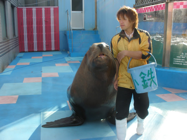 水槽から外へ出て来てパホーマンス。巨体にびっくり!